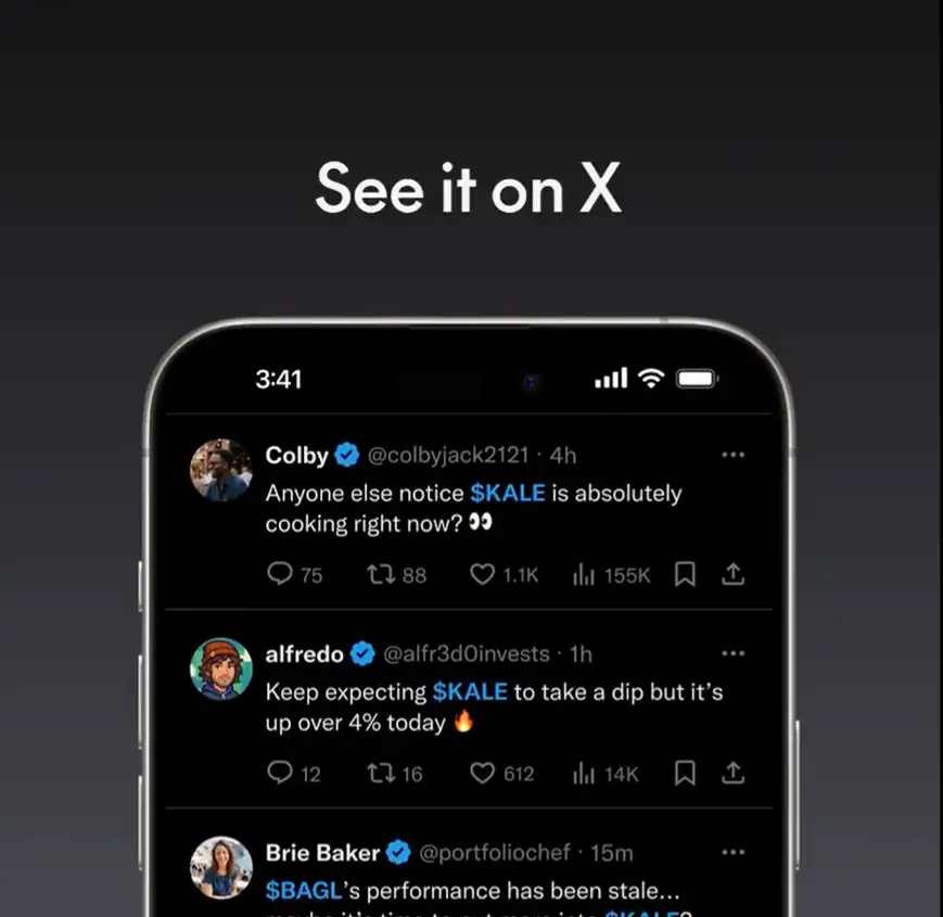 Cashtags verknüpfen Vermögenswerte oder Smart Contract Adressen mit Live Kurscharts und zugehörigen Posts direkt in der App. - Wealthsimple als Handelsbrücke: