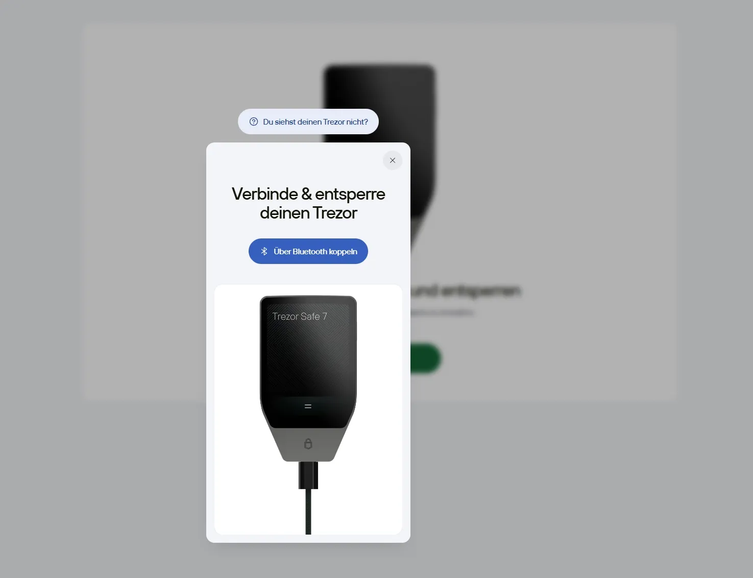 Lade die Trezor Suite auf deinen Desktop, dein Tablet oder Smartphone herunter. Über die Anwendung richtest du den Trezor Safe 7 ein und verwaltest anschließend deine digitalen Assets. - Gerät verbinden: